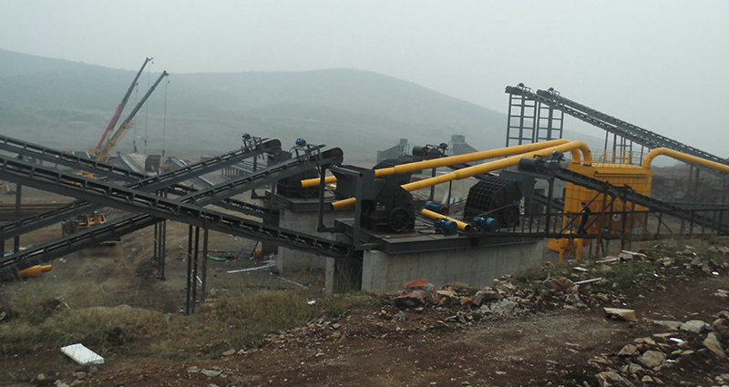 金寶山強擊式破碎機集反擊式、錘式破碎機優點于一體,克服了傳統錘式破碎機錘頭、錘軸易折斷的問題。破碎比更大,破碎力更強。配用液壓開啟,維修方便,可調式反擊板使錘頭利用率更高,無蓖板減少物料阻塞篩孔現象,使排料更順暢。特別對石灰石的粗、中、細碎一步到位,替代傳統的二級破碎工藝。